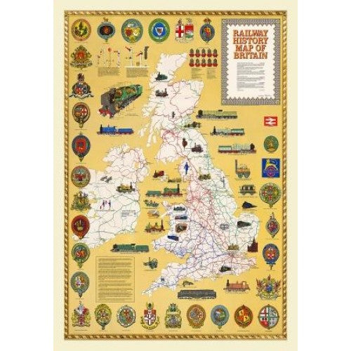 This is a wonderful jigsaw puzzle map illustrating the history of the Railways from the first Steam Engine to run on rails to the introduction of Diesel Electric Locomotives. Drawn by Laurence Richardson and last published in 1974 by Collins Bartholomew as a fold up map. Now re-digitized and re-published by Mapseeker in association with the Collins Bartholomew Archive, the jigsaw map covers all of England, Wales, Scotland and Ireland with various historical railway history events, progress, iconic steam locomotives, heritage railways illustrated pictorially in the form of eye catching vignettes. The map is surrounded by the crests of many of the Railway Companies that were founded over time until they were consumed under the Amalgamation of 1923.